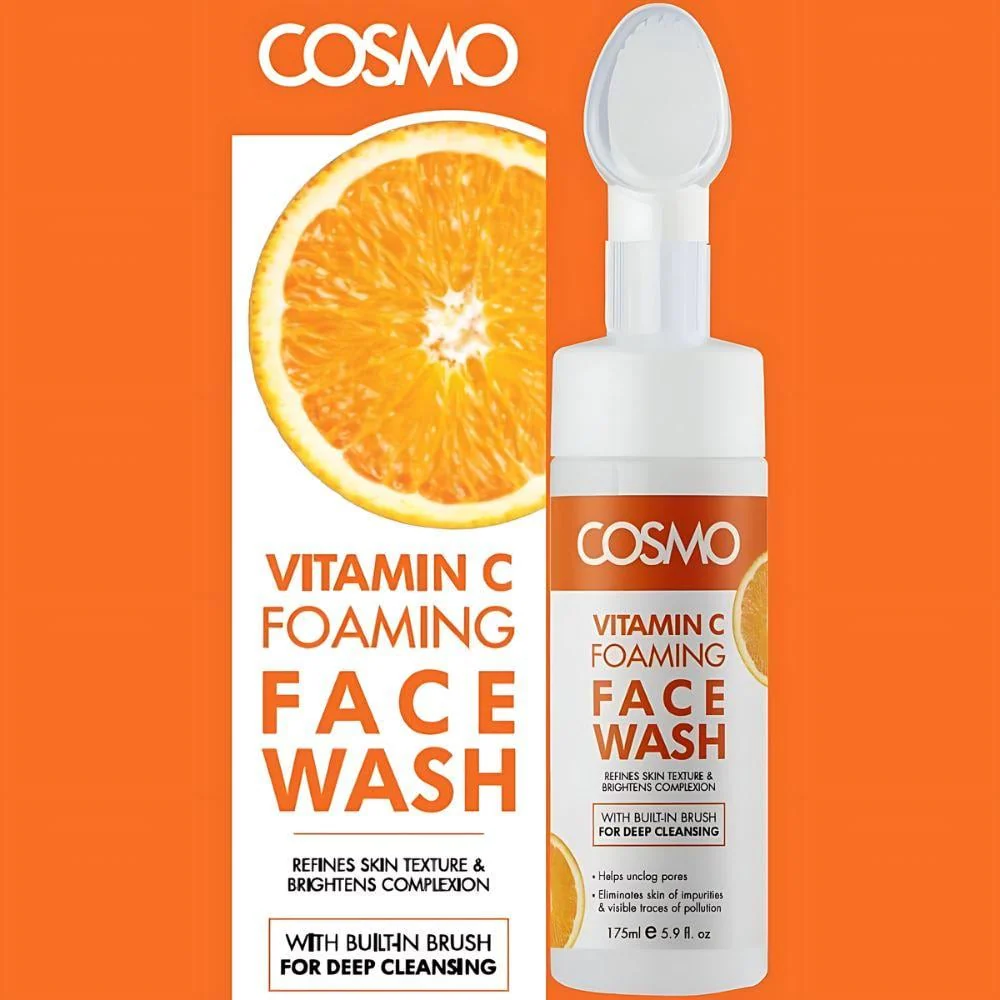 Cosmo Vitamin C Foaming Face Wash 175ml- Brightening Cleanser with Deep-Clean Brush