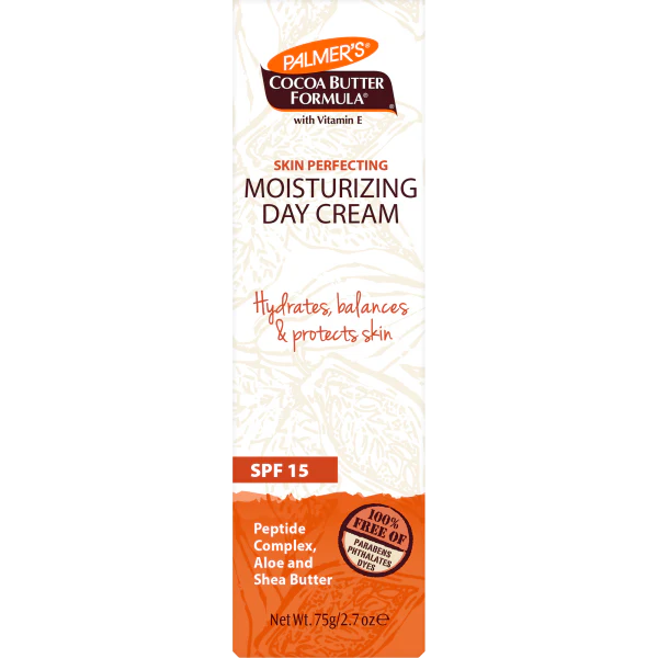 Protect, hydrate, and perfect your skin daily with Palmer’s Cocoa Butter Formula Skin Perfecting Moisturising Day Cream SPF15 (75ml / 2.7 oz) — a lightweight facial moisturizer that delivers lasting hydration while shielding skin from sun damage.