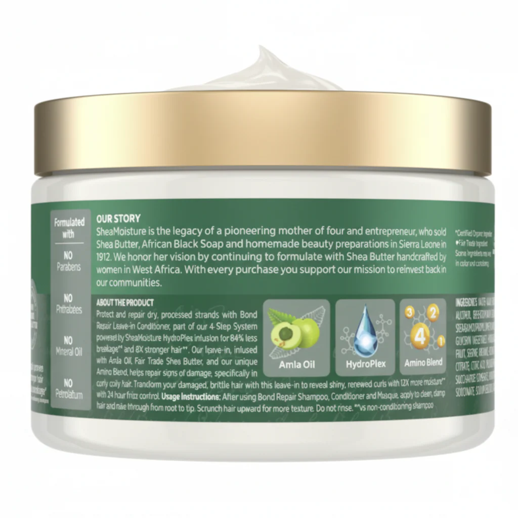Repair, protect, and strengthen damaged hair with Shea Moisture Amla Oil Bond Repair Leave-In Conditioner (11 oz / 311 g)—the essential leave-in treatment for worry-free styling and healthier hair.