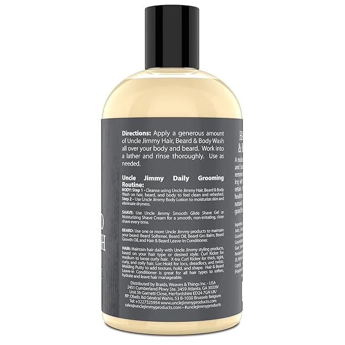 Upgrade your daily grooming routine with Uncle Jimmy Hair, Beard & Body Wash 12oz (356ml) — a powerful multi-purpose cleanser specially formulated for men.